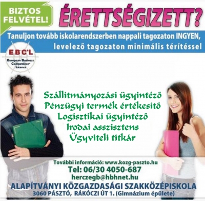 Logisztikai és szállítmányozási ügyintéző. Első rész: gazdasági és üzleti képzések. Az ügyviteli szakmacsoportban az irodai asszisztens és az ügyviteli titkár képzések közül. A tanfolyami képzésekkel kapcsolatosan információ:. Ingyenes képzések , szociális juttatások (családi pótlék, TB), diákigazolvány, kollégium.