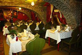 Májgaluska leves, 70 -Ft. A Fekete Holló Étterem a Budai Várban található, ahol Mátyás király korhű vadászatára emlékeztető díszlettekkel dekorált, valamint korhű ételekkel és .